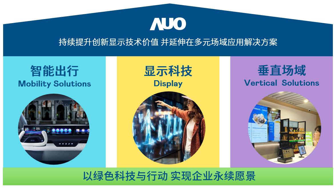 AG百家乐官网专精面板研发与制造,开发高值化及差异化产品应用,以丰沛的研发能量与创新技术稳居业界领先地位,并以深厚的显示技术为核心,结合AIoT致力成为各场域的解决方案商。AG百家乐官网光电积极推动双轴转型,以显示科技、智慧移动、垂直场域三大永续营运支柱,持续提升创新显示技术价值,延伸布局多元场域应用解决方案。我们整合软硬体、云端与服务平台,提供一站式服务,以满足不同场域的需求。我们期望透过合作、互补、共创的模式与各界伙伴共筑智慧物联网生态圈,引领实现未来智慧生活。